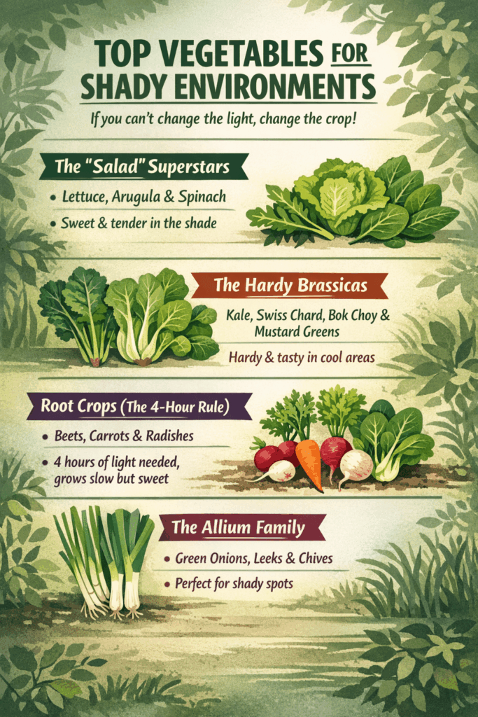 If you can’t change the light, change the crop. Here is a breakdown of what thrives when the sun goes down.